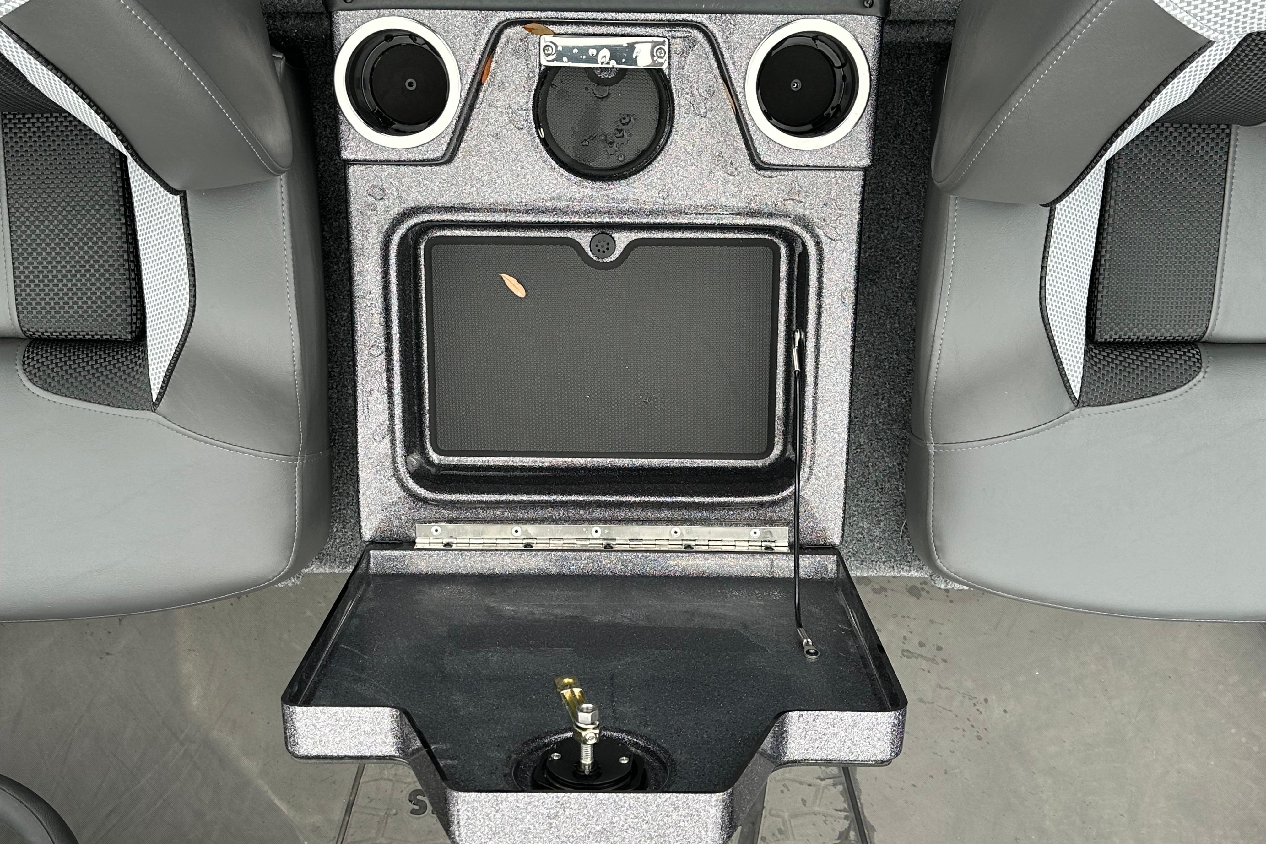 Custom fiberglass console with flush-mounted depthfinder