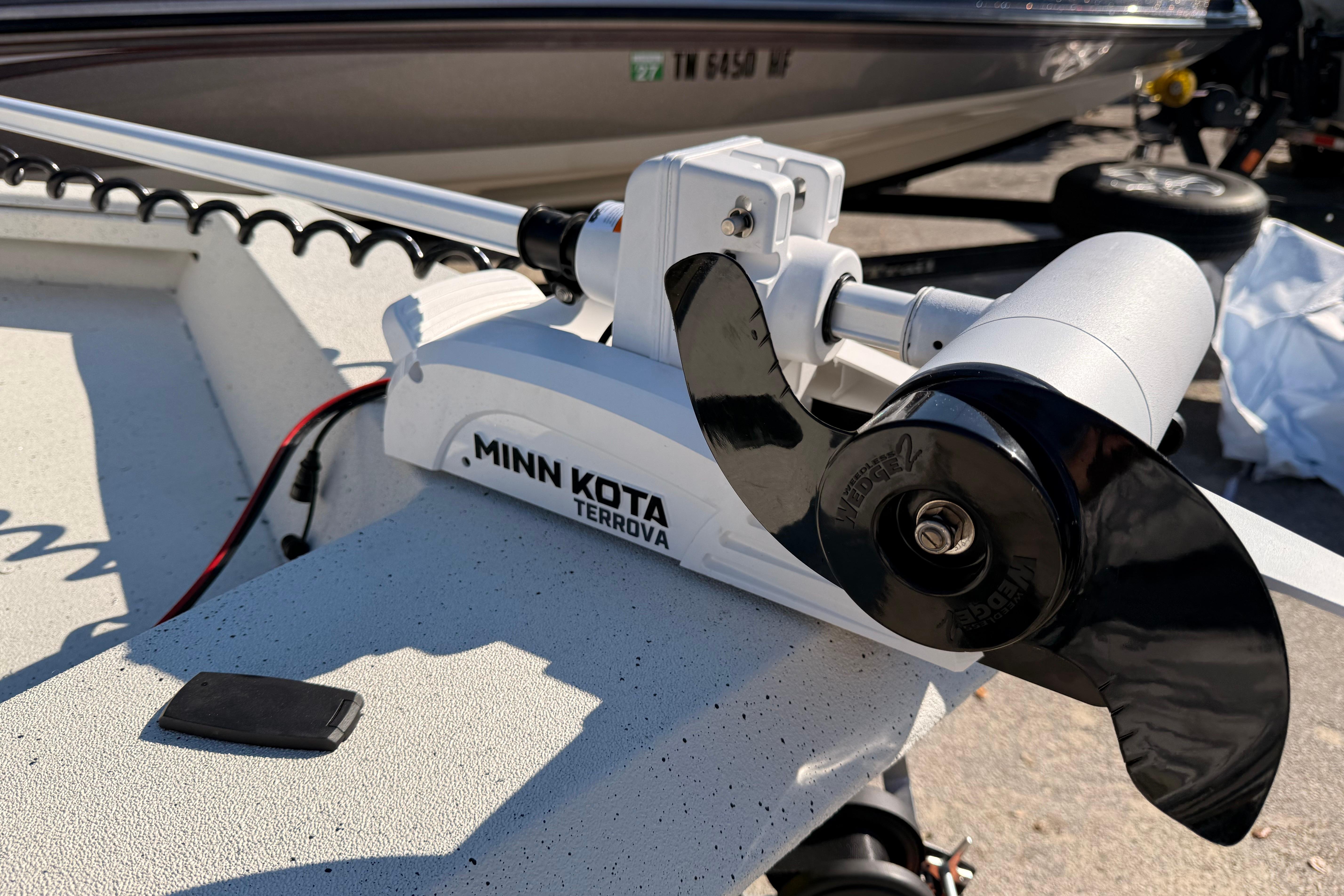 Cup Package 1 – Factory-installed Minn Kota Riptide Terrova 80 lb / 60" trolling motor with i-Pilot, along with a Lowrance Elite FS 9 fish finder with Active Imaging 3-in-1 transducer. This setup delivers professional-level boat control and advanced fish-finding capability.
