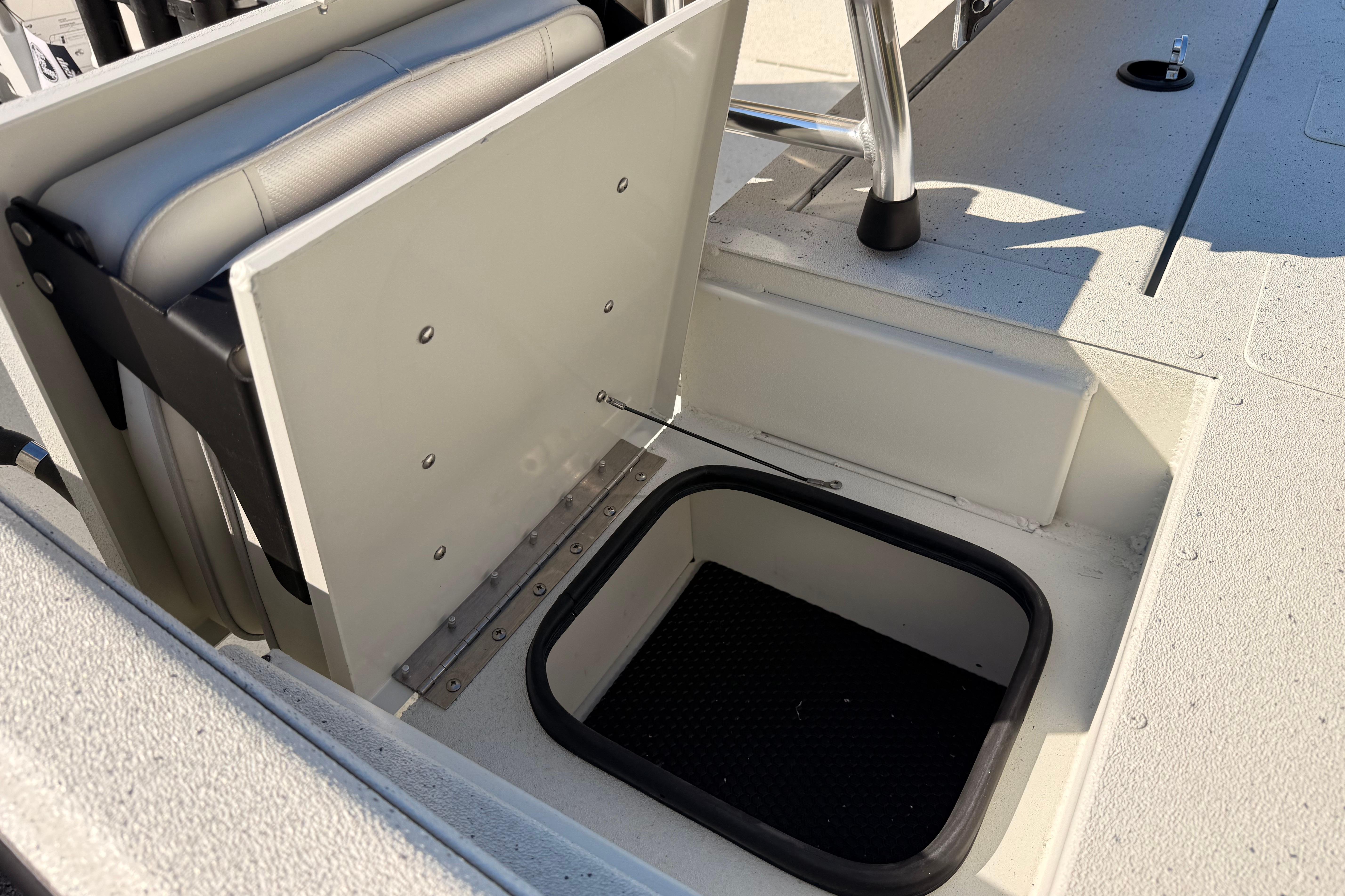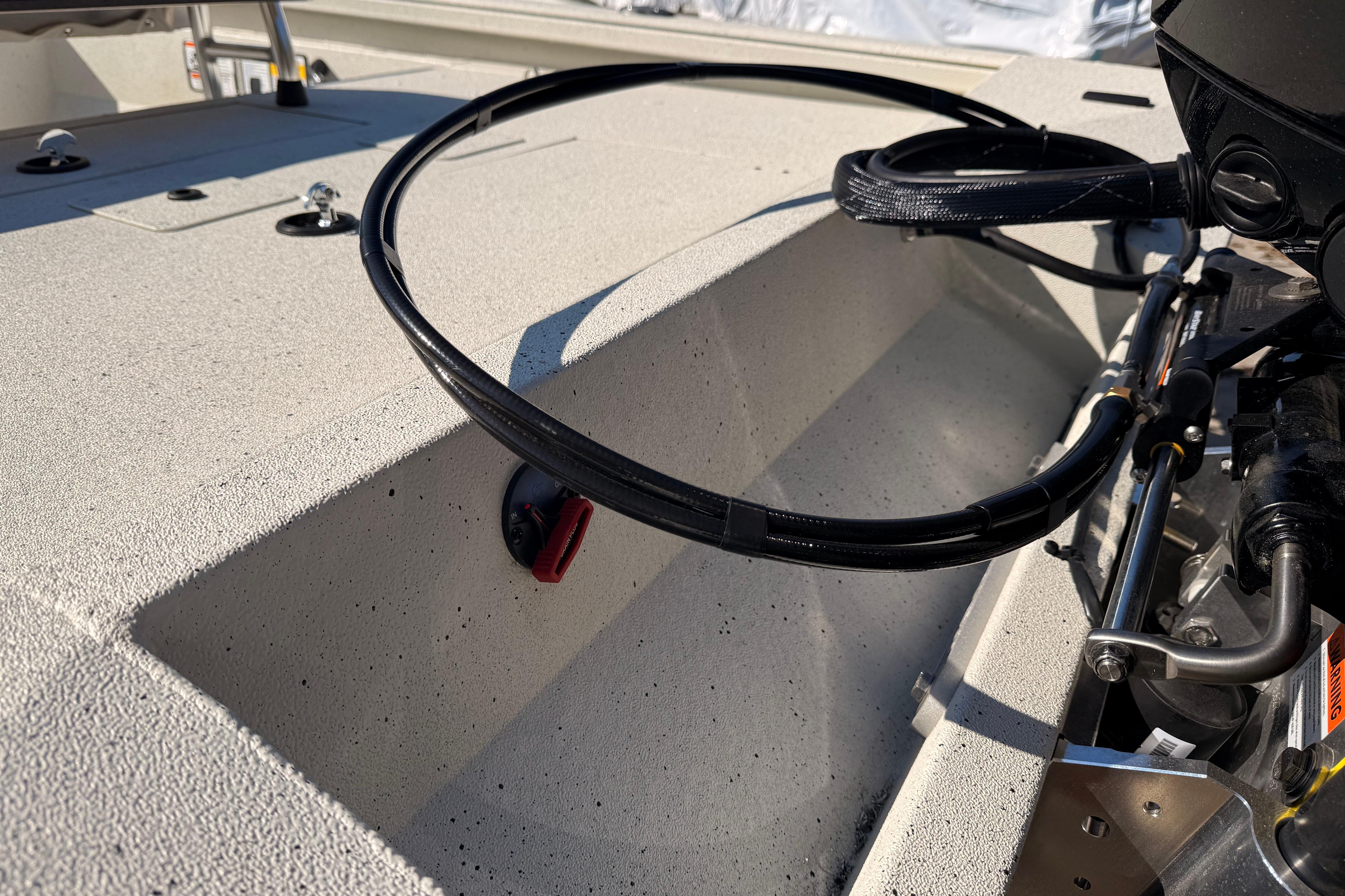 Fishing Package – Adds essential angler upgrades including a 40-quart cooler, water pressure and trim gauges, and hydraulic jackplate preparation for Power-Pole installation, all designed to improve efficiency and comfort on the water.