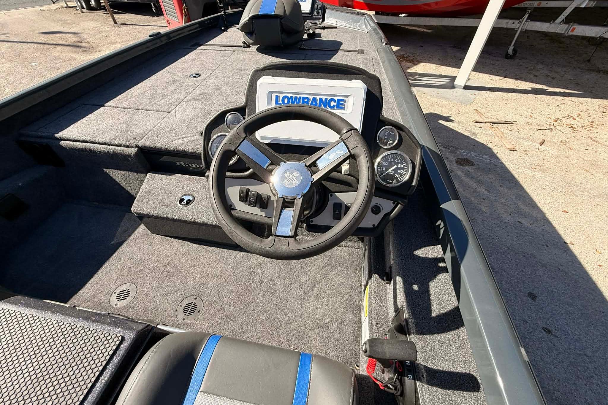 The wide front casting deck offers plenty of room to fish comfortably, while the cockpit provides a well-designed helm and comfortable seating. Ranger’s storage layout includes large rod lockers and dry compartments, allowing you to keep gear organized and protected. The aluminum construction keeps the boat lightweight without sacrificing strength or longevity.